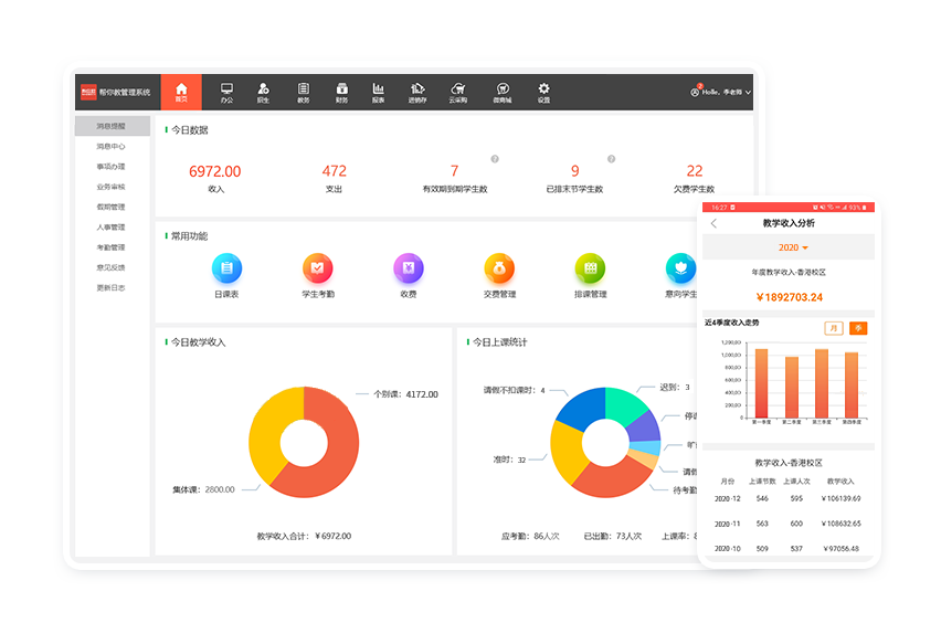 • 通過朋友介紹使用“幫你教”,節省了很多人力、財力。系統全方位統計學員、老師信息,包括課時安排和工資計算,都可隨時隨地操作。我經常不在機構,但管理起來很放心。有問題售后老師也是及時幫助解決,非常值得推薦。